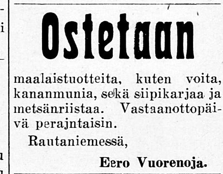 Tänne on asutus tullut jo samaan aikaan kuin keskiseenkin Rautaniemeen. Seutu sai ensimmäiset asukkaansa aina Pohjanmaalta, Lappväärtin pitäjästä asti. Sieltä saapuneet useat eri uudisasukasperheet asettuivat asumaan laajan Varessuon tienoille, ja sinne tänne rakensivat saunojaan ja pirttejään. He varmaankin toivat tervanpolton taidon Rautaniemeenkin.